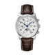 Gent's Longines Master Collection Moonphase Automatic. The 40mm case is stainless steel and the dial is white. The glass and case back are sapphire crystal The strap is brown alligator leather with stainless steel bifold clasp. The watch features lunar phase and day / date functions. The movement is automatic. Currently out of stock but available to order.