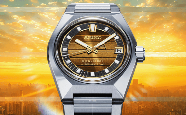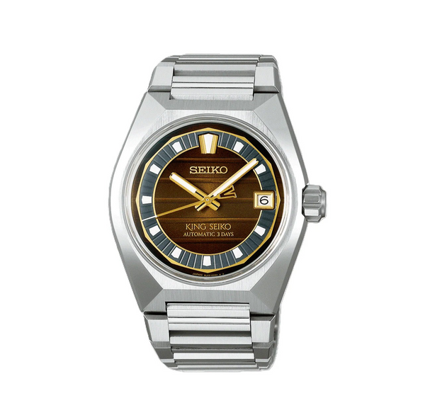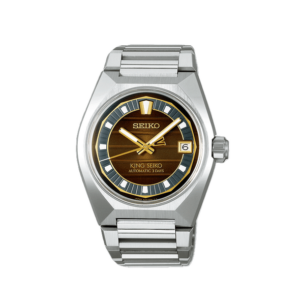 Gent's King Seiko VANAC Limited Edition Automatic Watch. The 41mm case and bracelet are stainless steel. The dial is brown in colour with a date function. The glass is a box shaped sapphire crystal. The watch has a see-through case back and is 100m water resistant. The movement is a Calibre 8L45 Automatic 3 Days. One of 700 pieces worldwide. Three year Seiko international warranty.