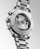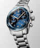 Gents Longines Spirit Flyback Chronograph Automatic Chronometer Watch. The 42mm case and bracelet are stainless steel with a blue ceramic bezel. The dial is blue with arabic numerals and two sub-dials. A seconds hand sub-dial is positioned at 9 o'clock. The glass is sapphire crystal and the case back is transparent sapphire crystal. The watch has a flyback chronograph function and is 100m water resistant. The movement is an automatic chronometer. Currently out of stock.