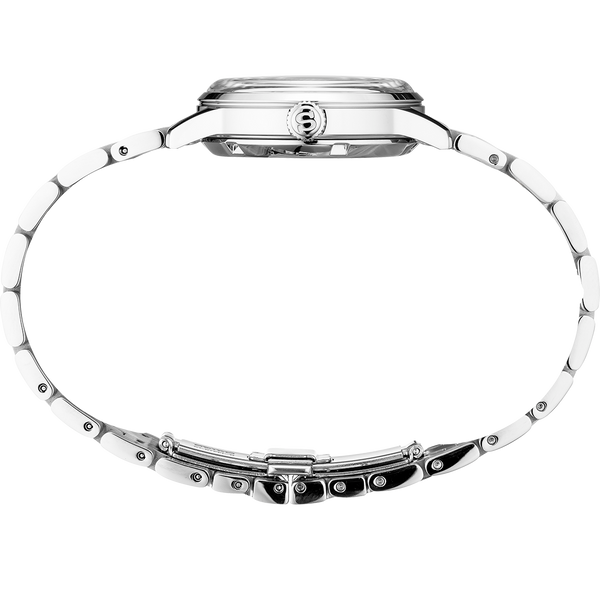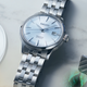 Ladies Seiko Presage Cocktail Time Stainless Steel 33.8mm Case and Bracelet Light Blue Patterned Dial Transparent Case Back Date Automatic Watch. Currently out of stock.