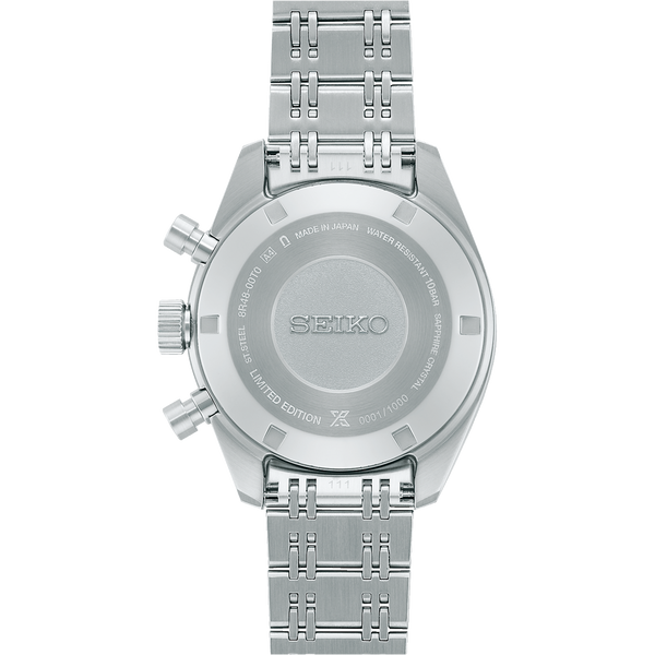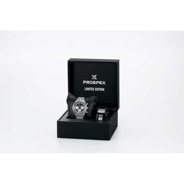 Gent's Seiko Prospex Speedtimer 100th Anniversary of Speedtimer Limited Edition Automatic Chronograph Watch. The 42mm case and bracelet are stainless steel. The dial is black with white sub-dials and a black and white inner flange tachymeter scale. The watch features a chronograph and date functions. The glass is sapphire crystal. The watch is 100 metres water resistant and has a see-through case back. The movement is automatic. Presented in a special box. One of 1,000 pieces worldwide.