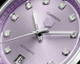 Ladies TAG Heuer Carrera Automatic Watch. The 36mm case and bracelet are stainless steel. The dial is lilac with eleven diamond set hour markers and an inner flange with seconds markers. The glass is sapphire crystal and the case back is transparent with a sapphire crystal glass. The watch has a date function. The movement is a Calibre 7 automatic.