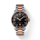 Tissot T- Sport Seastar 1000 Bicolour: Rose Gold PVD and Stainless Steel 40mm Case and Bracelet Bicolour Black and Rose Gold PVD Edged Mineral Bezel Black Dial with Rose Accents Date Sapphire Crystal Glass 300m W/R Quartz Watch.