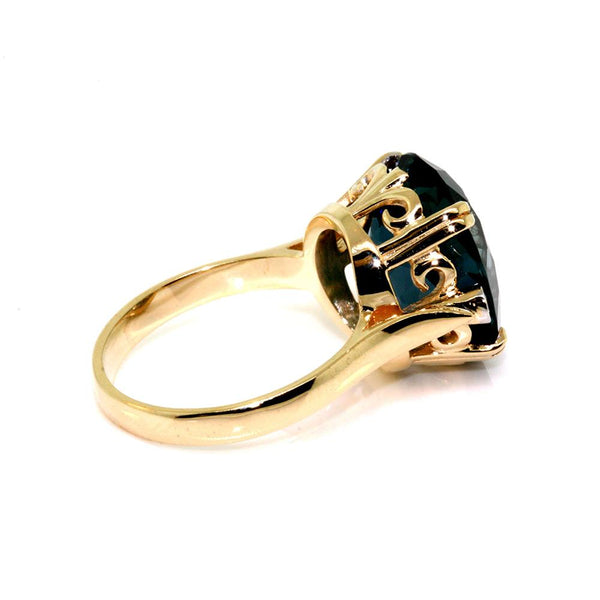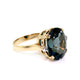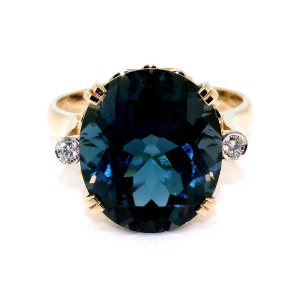 9k yellow gold dress ring with a 8.4ct oval London blue topaz and two 0.03ct round brilliant cut diamonds, quality FG / VS-SI1.