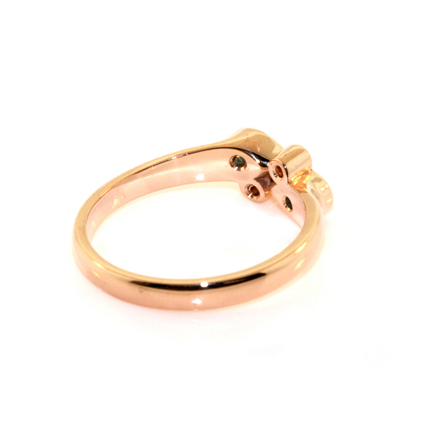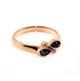 9k rose gold dress ring set with two 5 x 3mm pear shaped London blue topaz and 0.06cts (in total) of round brilliant cut diamonds, FG colour, VS-SI1 clarity.