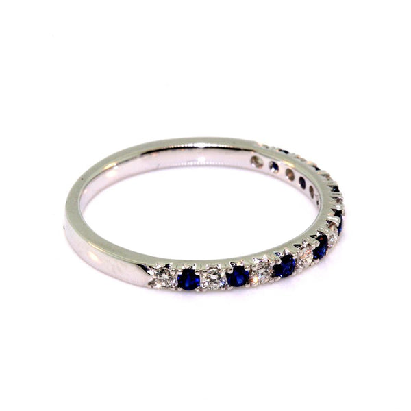 18k white gold ring set with 0.19cts of sapphires and 0.15cts of round brilliant cut diamonds, quality GH / SI.