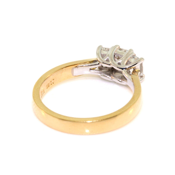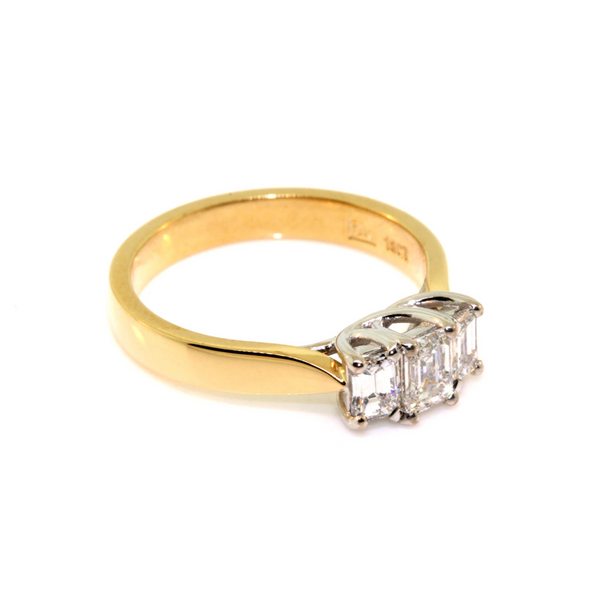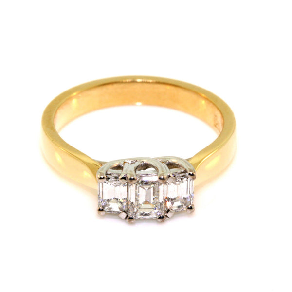 18k yellow gold and platinum three stone ring set with 0.89cts (in total) of emerald cut diamonds.
