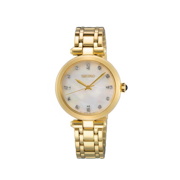 Ladies TAG Heuer Link Quartz Watch. The 32mm case and bracelet are stainless steel, the dial white mother-of-pearl and the glass is sapphire crystal.