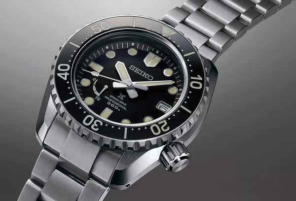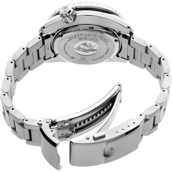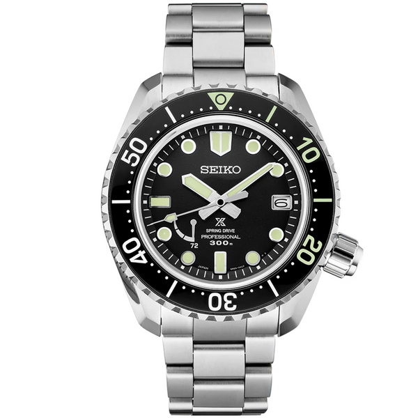 Gent's Seiko Prospex LX Spring Drive 300m Divers Watch. The 44.8mm case and bracelet are titanium, the bezel is black ceramic. The dial is black with a power reserve indicator and date function. The glass is sapphire crystal. The watch is 300 metres water resistant. The movement is a spring drive (powered by the wearer). Three year Seiko international warranty.
