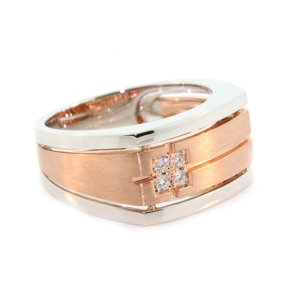 Gent's 18k rose and white gold diamond ring. The ring is set with 0.12cts of round brilliant cut diamonds, colour GH, clarity SI1-2.