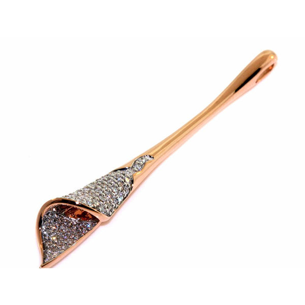 14k rose gold diamond set lily pendant, set with 0.44cts of round brilliant cut diamonds, quality GH / SI. The pendant comes with a 9k rose gold Italian cable link pendant chain, 45cm in length.