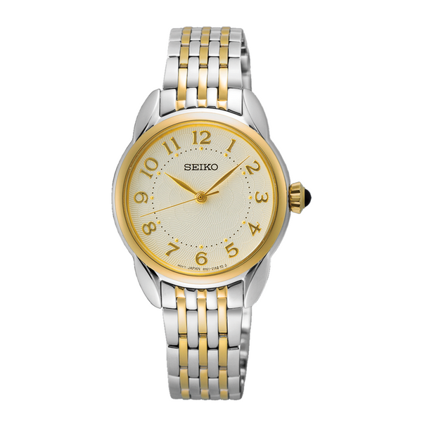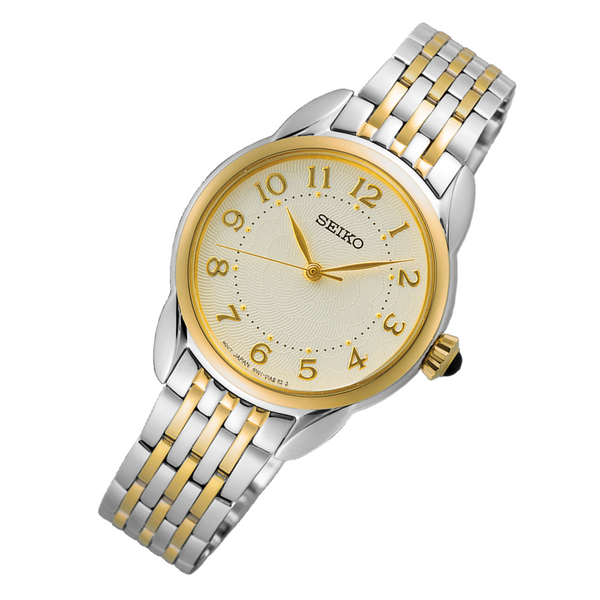 Ladies Seiko Conceptual Bicolour: Yellow Gold PVD and Stainless Steel 28.7mm Case and Bracelet Off White Dial with Gold Coloured Arabic Numerals Quartz Watch.