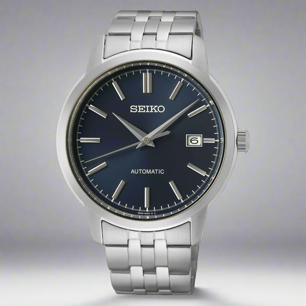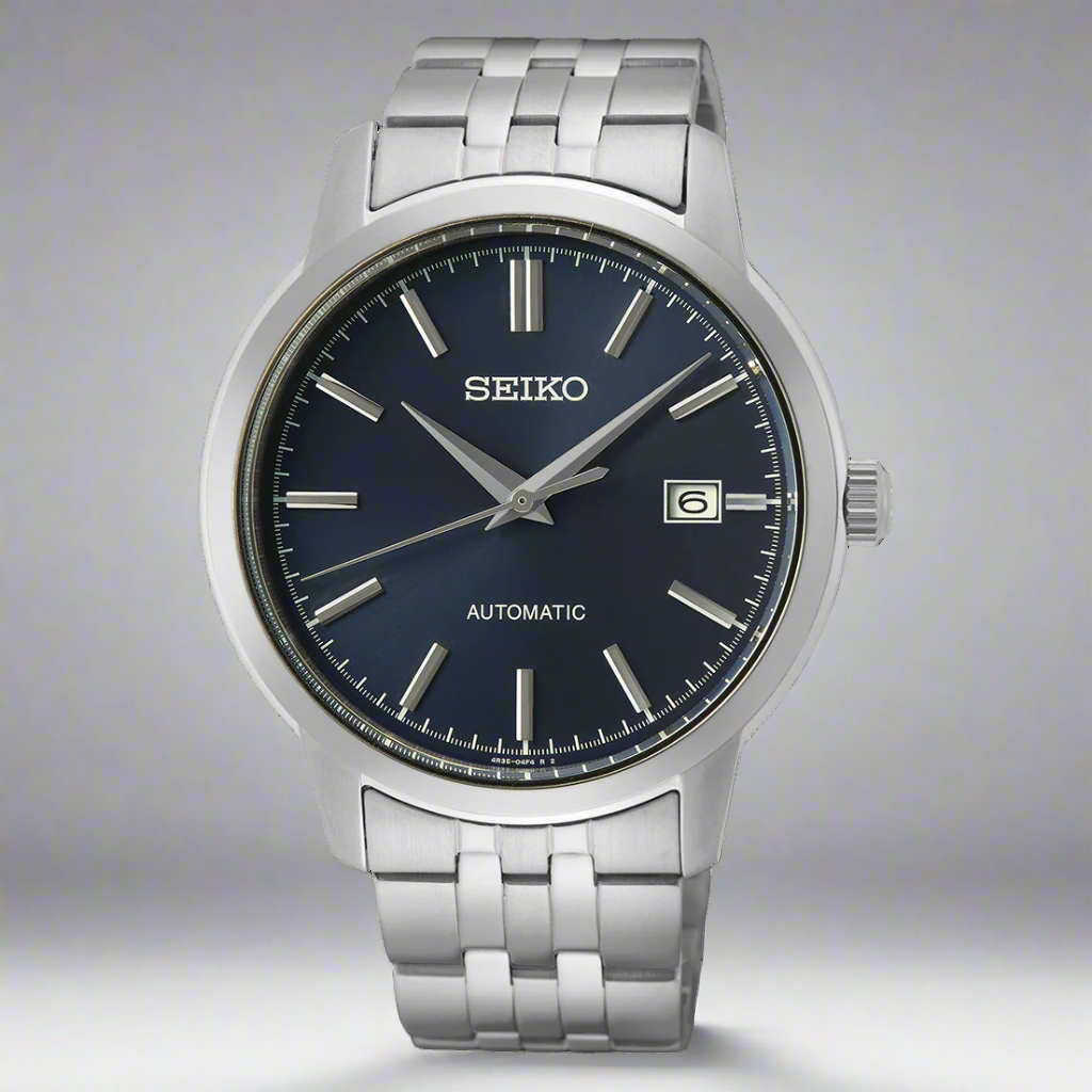 Gent's Seiko 41.2mm Stainless Steel Case and Bracelet Blue Dial Date Transparent Case Back 100m Automatic Watch.