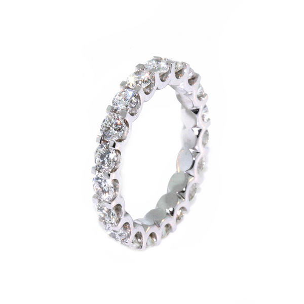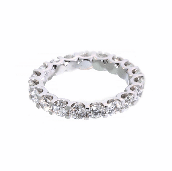 Ladies custom-made platinum full circle diamond wedding / eternity ring. The ring is set with 2cts of round brilliant cut diamonds, quality D-F / VS1-2. The ring is made to order in the required finger size and is priced based on size M.