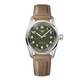 Gent's Longines Spirit Automatic Chronometer Watch. The 40mm case is stainless steel with a brown leather strap. The dial is green with arabic numerals and the glass is sapphire crystal. The watch has a date function and is 100m water resistant. The movement is an automatic chronometer. Currently out of stock but available to order.