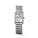 Ladies Longines Dolce Vita Quartz Watch. The 21.5 x 29mm case and bracelet are stainless steel. The dial is silver with black roman numerals framed within a circle, blue hands and a seconds hand sub-dial. The glass is sapphire crystal. The movement is quartz.