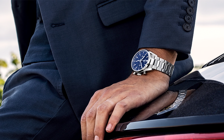 Gents TAG Heuer Carrera Calibre Heuer 02 Automatic Watch. The 42mm case and bracelet are stainless steel. The dial is blue and the glass is sapphire crystal. The watch features a chronograph and a date function and is 100 metres water resistant. The movement is Calibre Heuer 02 automatic.