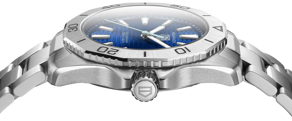 Gent's TAG Heuer Aquaracer Professional 200 Solargraph Watch. The 40mm case, bracelet and bezel are stainless steel. The dial is blue with a sunray finish. The glass is sapphire crystal. The watch has a date function and is 200 metres water resistant. The movement is solar powered, Calibre TH50-00 quartz movement. Currently out of stock but a new piece is expected to arrive instore soon.