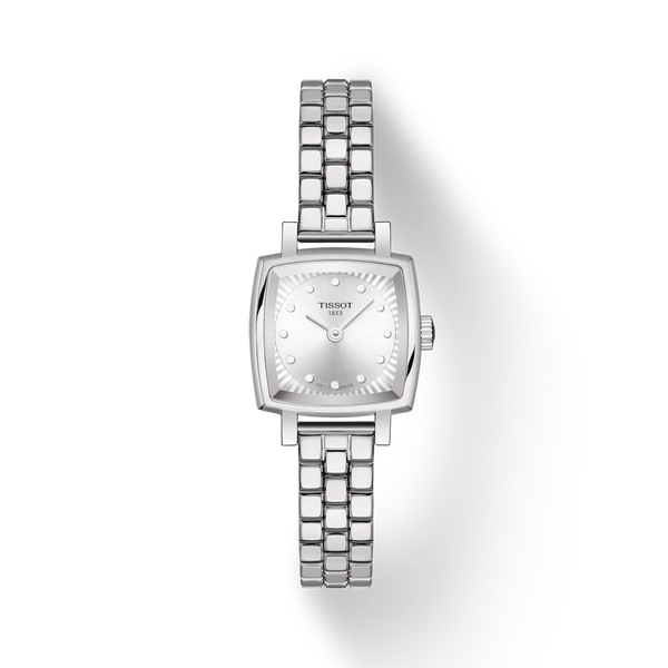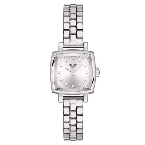 Ladies Tissot Lovely Square Stainless Steel 20mm Case and Bracelet Silver Dial with 12 Diamond Set Hour Markers Sapphire Crystal Glass Quartz Watch. Currently out of stock.