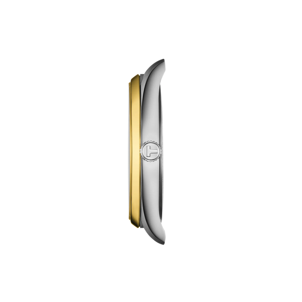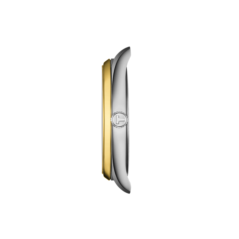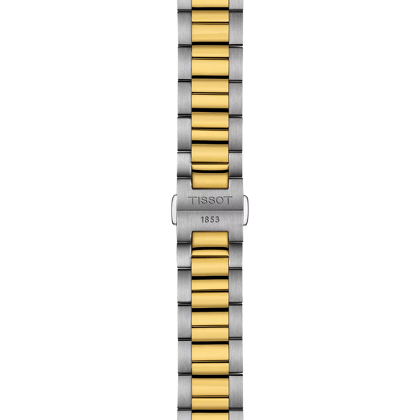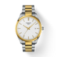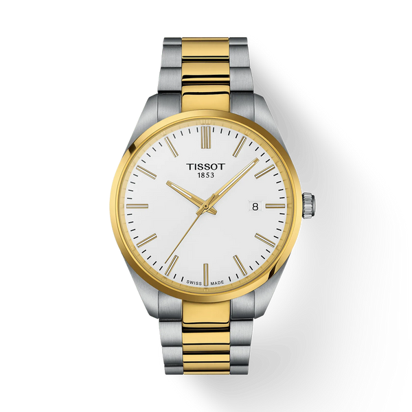 Gent's Tissot PR100 Bicolour: Yellow Gold PVD and Stainless Steel 40mm Case and Bracelet White Dial Sapphire Crystal Glass Date 100m Water Resistant Quartz Watch.