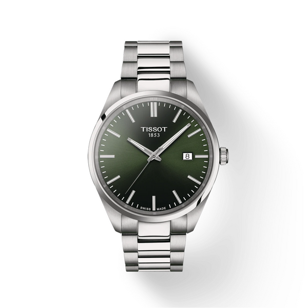 Gent's Tissot PR100 Stainless Steel 40mm Case and Bracelet Green Dial Sapphire Crystal Glass Date 100m Water Resistant Quartz Watch. Currently out of stock.