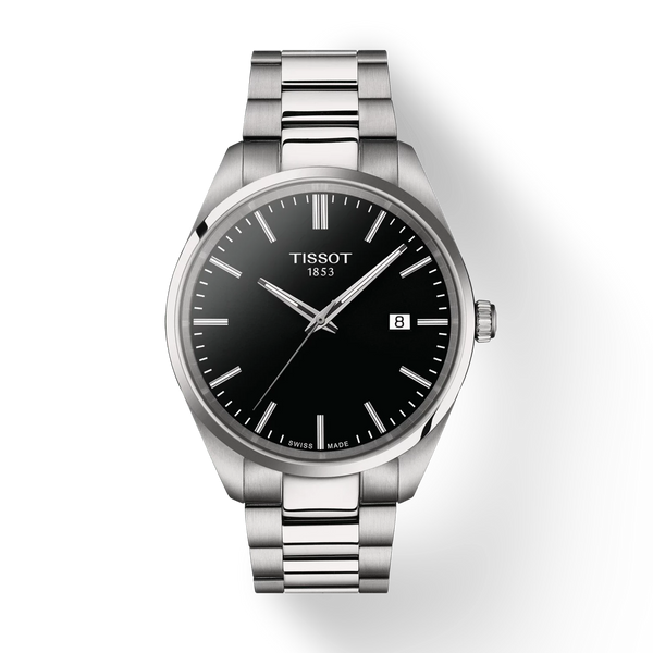 Gent's Tissot PR100 Stainless Steel 40mm Case and Bracelet Black Dial Sapphire Crystal Glass Date 100m Water Resistant Quartz Watch.