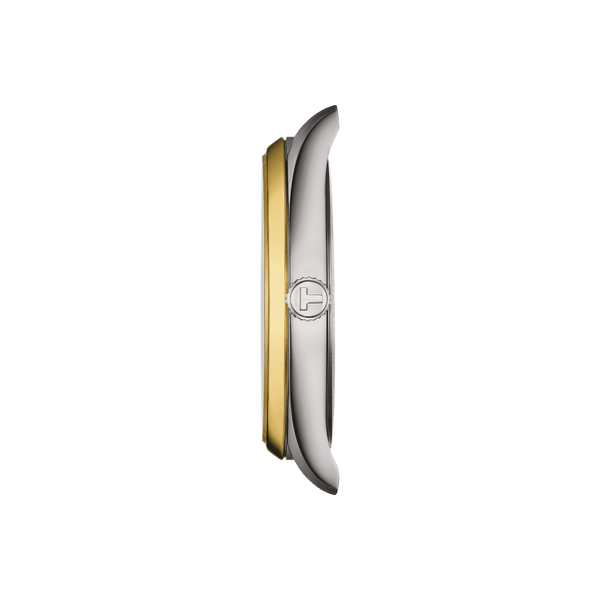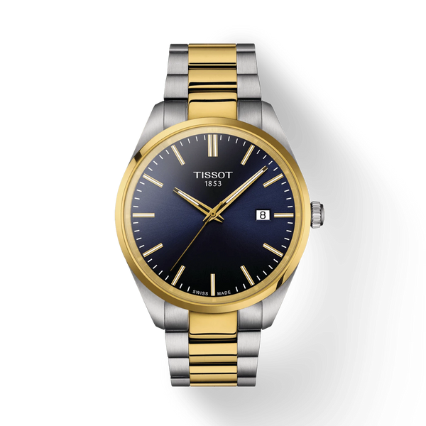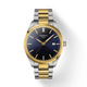 Gent's Tissot PR100 Bicolour: Yellow Gold PVD and Stainless Steel 40mm Case and Bracelet Blue Dial Sapphire Crystal Glass Date 100m Water Resistant Quartz Watch.