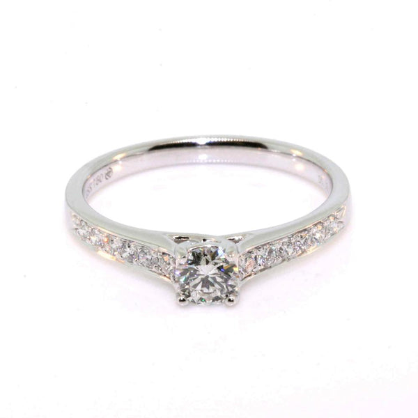 Shoulder diamonds: 0.20cts of round brilliant cut diamonds, GH / SI.