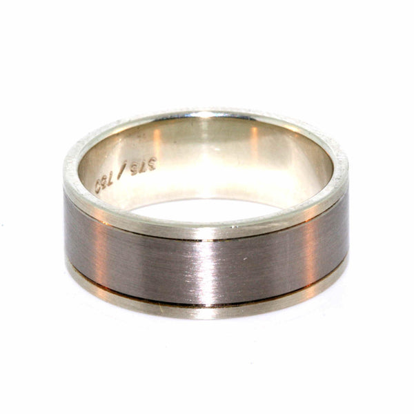 Gent's 18k and 9k white gold wedding ring. The ring is 8mm wide. The ring is made in the required finger size.