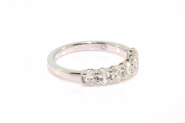 18k white gold diamond anniversary style ring. The ring is set with 1.02cts of oval diamonds, FG colour, SI1-2 clarity. The diamonds are set inline into shared claw settings.