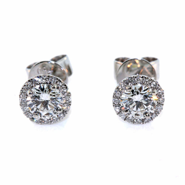David Keefe diamond halo earrings can be ordered in your choice of diamond size and quality, and in platinum or 18k yellow, white and rose gold.