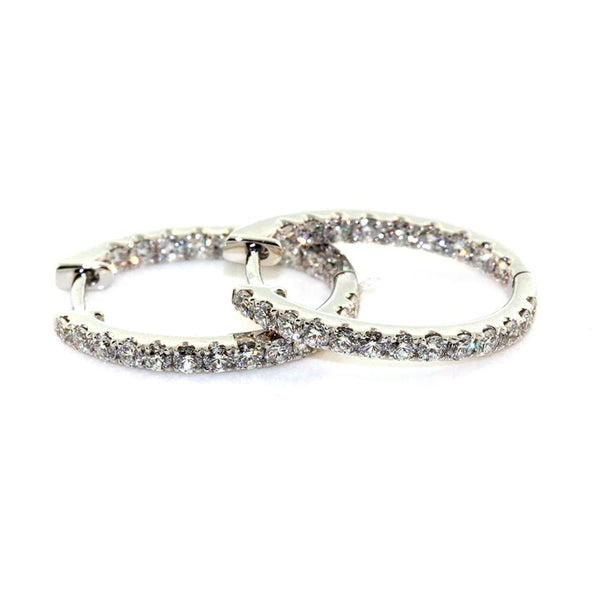 18k White Gold Hinged Hoop Earrings. The earrings are set with 1ct in total of round brilliant cut diamonds, quality FG / VS-SI.