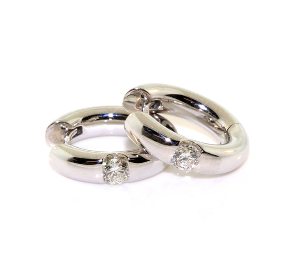 9k White Gold Diamond Hoop Earrings. The earrings are set with 0.40cts (in total) of round brilliant cut diamonds, FG colour, VS2-SI1 clarity. The earrings are manufactured in Germany with the diamonds set in our workshop.