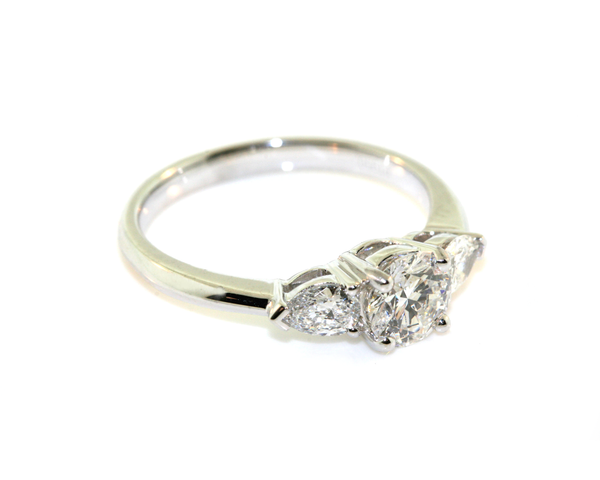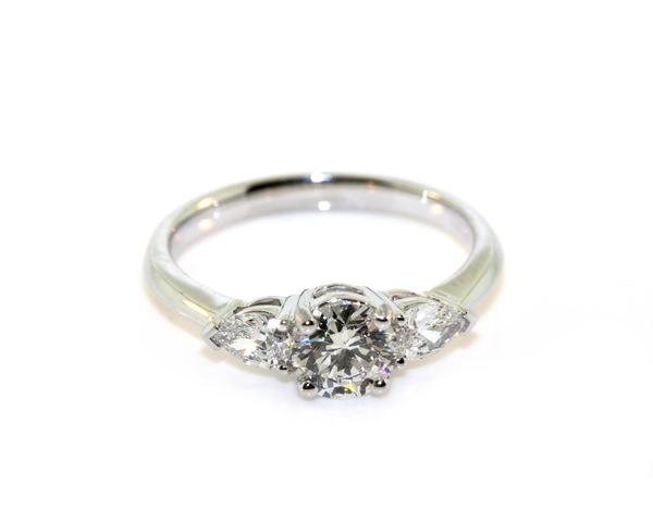Side diamonds: 2 = 0.38cts (in total) of pear shaped diamonds, FG colour, VS2 clarity.