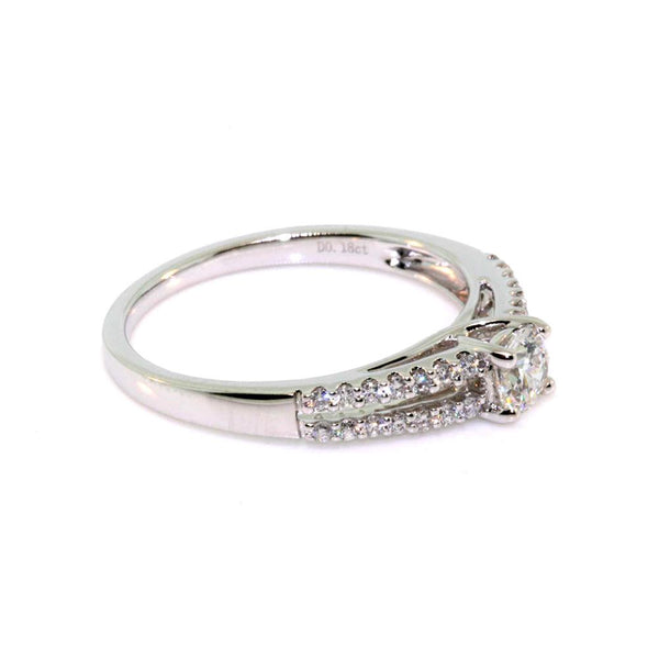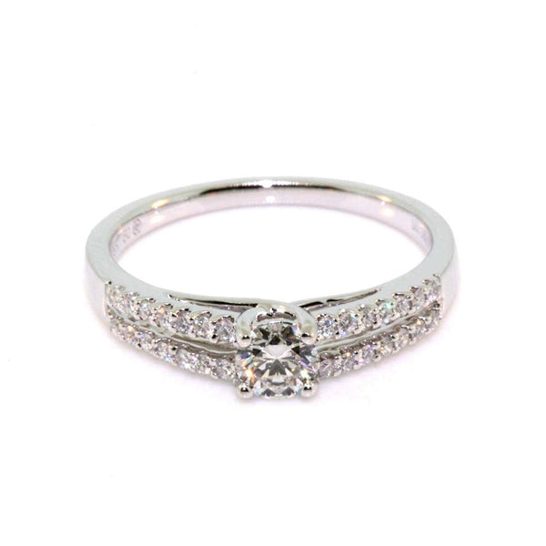 Centre diamond: 0.32ct round brilliant cut diamond, FG / VS1-2, very good cut.
