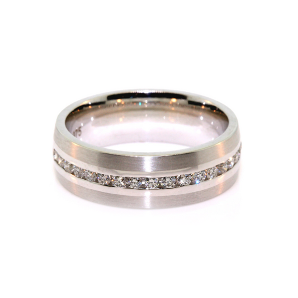 Gents 9k White Gold Diamond Wedding Ring from the Dora Collection. The ring is 7mm wide and is set with 0.46cts of round brilliant cut diamonds, G-H colour, SI clarity.