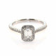 18k white gold emerald cut diamond halo engagement ring.