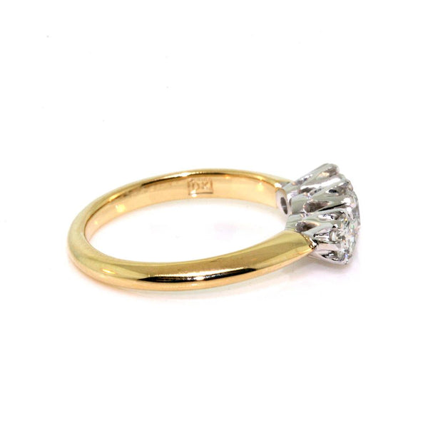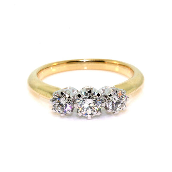 18k yellow gold and platinum three stone ring set with 0.71cts (in total) of round brilliant cut diamonds.