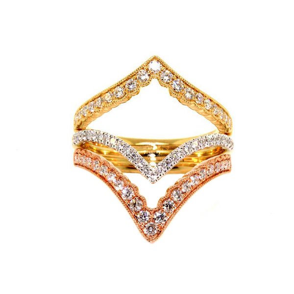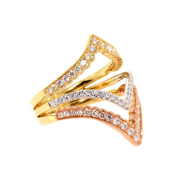 18k yellow, rose and white gold diamond dress ring set with 0.70cts of round brilliant cut diamonds, quality GH / SI. This ring is made to order in the required finger size.