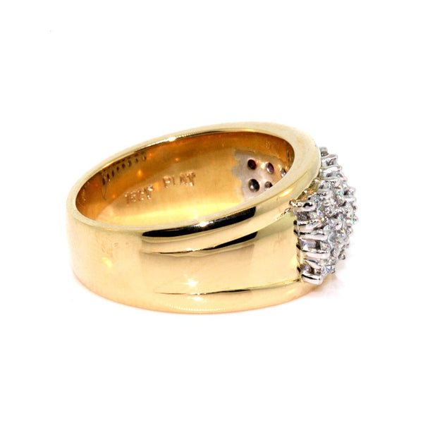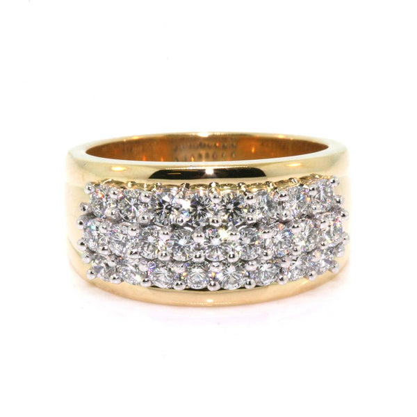 18k yellow gold and platinum diamond dress ring. The ring is set with 1ct of round brilliant cut diamonds, FG colour and VS-SI1 clarity.