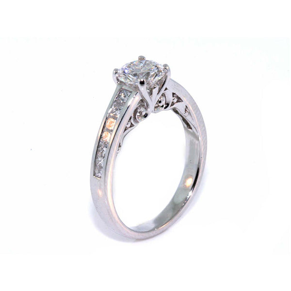 18k white gold 1ct round brilliant cut diamond set engagement ring. This ring is made to order in the required finger size and with the preferred centre diamond size and quality. The ring is pictured and priced with: