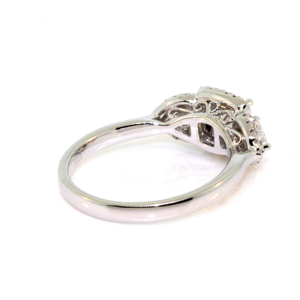 This design can be made with different size and quality diamonds, and using all white diamonds, or with a ruby, sapphire or emerald centre gemstone. The ring can also be made in all platinum and 18k yellow, white or rose gold.