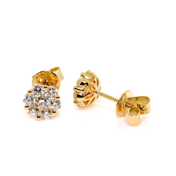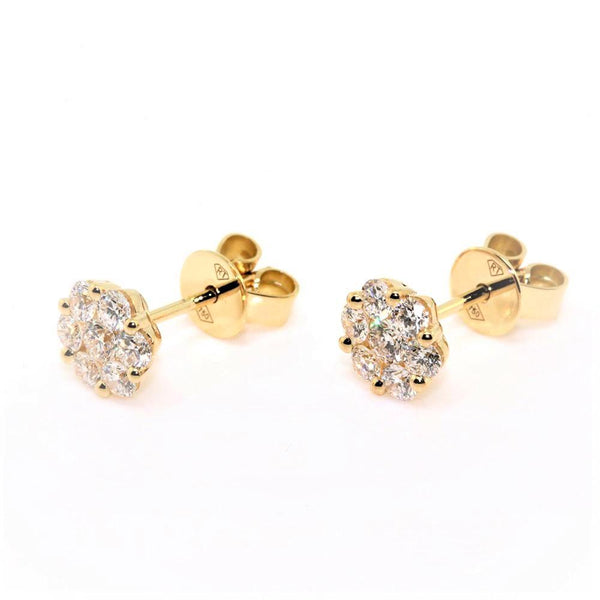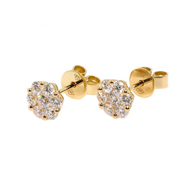 18k yellow gold diamond set cluster earrings. The earrings are set with 0.84cts of round brilliant cut diamonds, quality GH / SI1-2. The earrings have post and butterfly stud fittings.