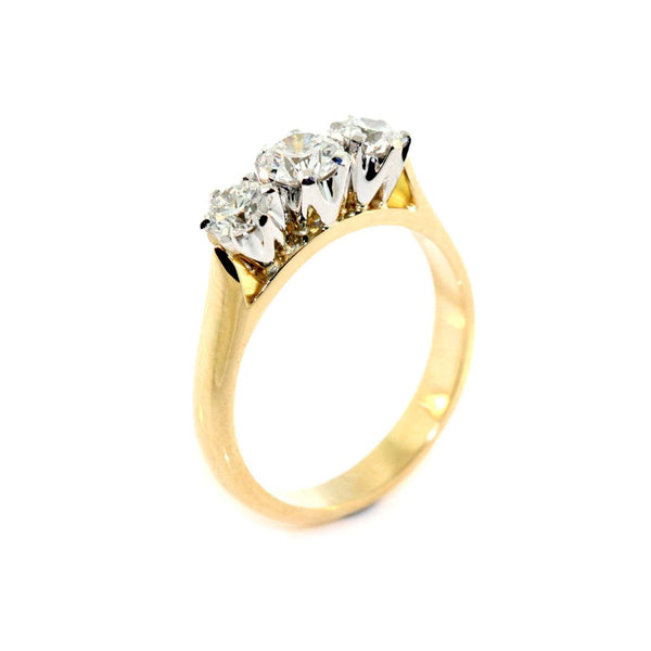 18k yellow gold and platinum 0.92ct total diamond weight three stone ring. This ring is set with: