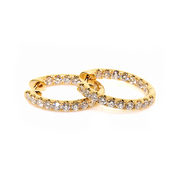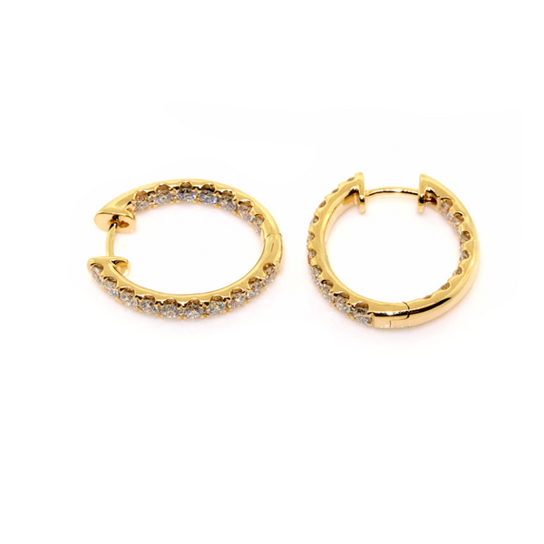 18k Yellow Gold Diamond Set Oval Hoop Earrings set with 1.33cts of round brilliant cut diamonds cut, GH colour, SI clarity.