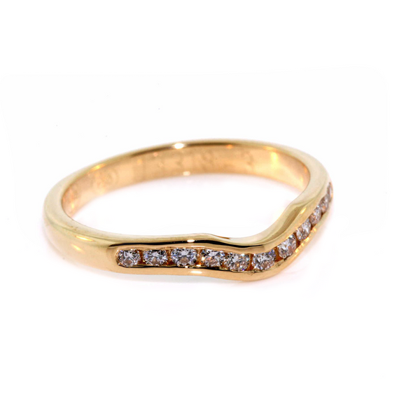 Ladies 18k yellow gold curved diamond set wedding / eternity ring. The ring is set with 0.22cts of round brilliant cut diamonds, quality GH/VS-SI. The ring is made to order in the required finger size. Pricing is based on finger size L-M.