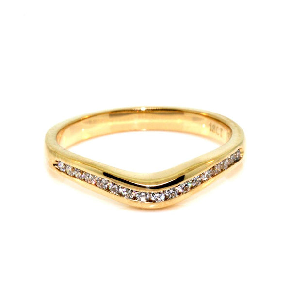 Ladies 18k yellow gold shaped diamond set wedding / eternity ring. The ring is set with 0.17cts of round brilliant cut diamonds, quality FG / VS-SI1.
