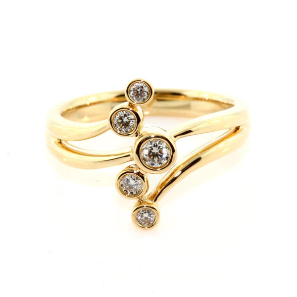 18k yellow and white gold diamond dress ring, bezel set with 0.21cts of round brilliant cut diamonds, GH/SI.