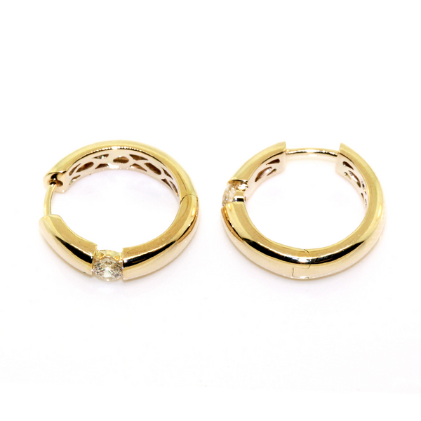 Ladies 14k Yellow Gold Diamond Hoop Earrings. The earrings are set with 0.28cts in total of round brilliant cut diamonds, G-H colour, SI1-2 clarity.