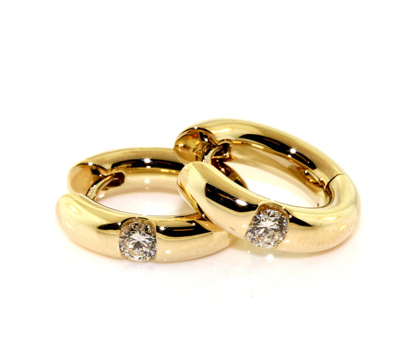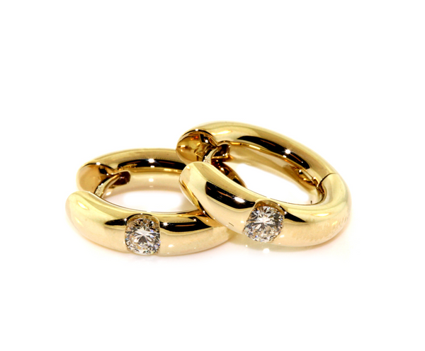 9k Yellow Gold Diamond Hoop Earrings. The earrings are set with 0.40cts (in total) of round brilliant cut diamonds, FG colour, VS2-SI1 clarity. The earrings are manufactured in Germany with the diamonds set in our workshop.
